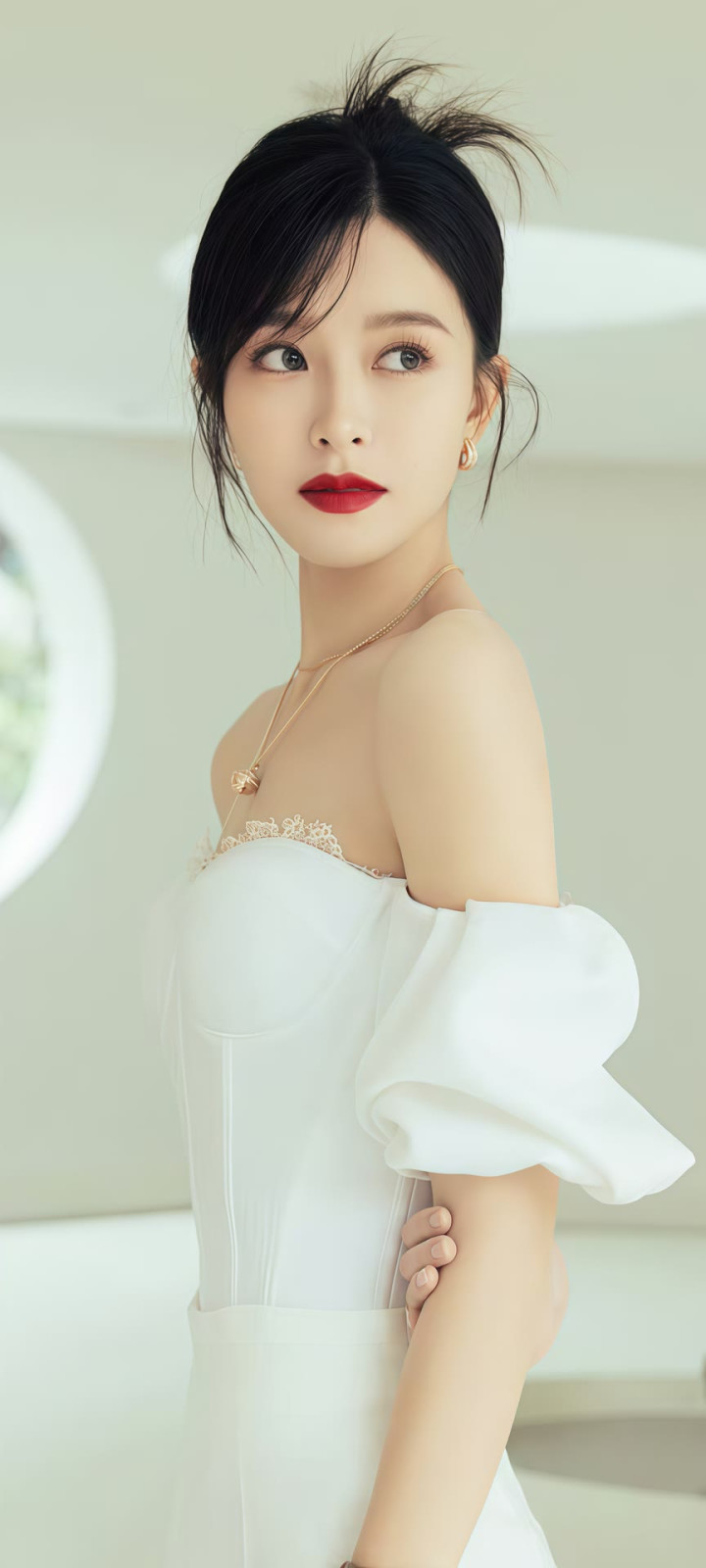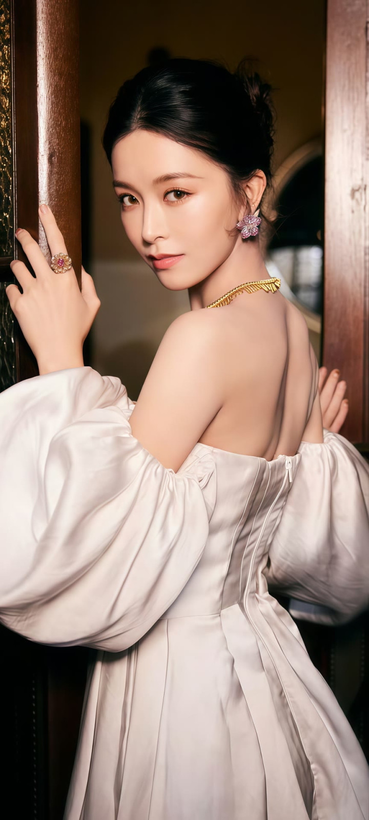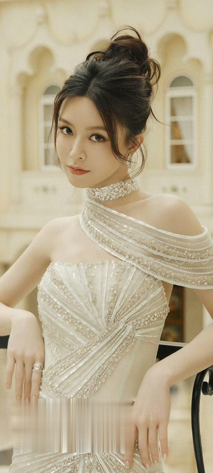 文咏珊一袭斜肩礼裙, 古堡大片美成贵族公主
